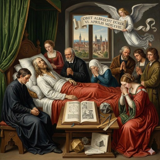 Albrecht Dürer stirbt am 6. April in Nürnberg. Neben seinem künstlerischen Schaffen war Dürer auch auf dem Gebiet der Mathgematik (Geometrie) tätig. Von besonderem historischen Wert ist dabei seine "Underweysung der messung mit dem zirckel und richtscheyt in Linien ebnen unnd gantzen corporen", welches das erste Mathematikbuch in deutscher Sprache mit bedeutenden neuen Erkenntnissen ist.